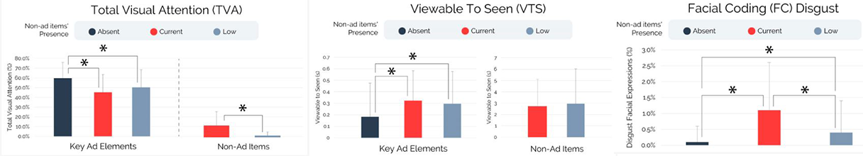 Dal punto di vista emotivo, è stato dimostrato anche come l’assenza degli elementi non pubblicitari fosse associata a un minor grado di irritabilità da parte degli utenti e dunque di disgusto provato, poiché veniva meno l’associazione con l’inganno percepito.