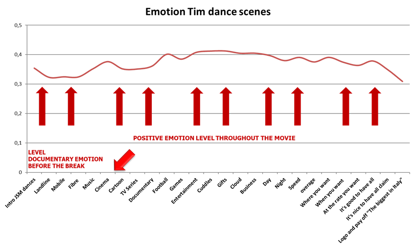 Ad ottobre 2016, TIM ha chiesto a BrainSigns di misurare in chiave neuromarketing la risposta istintiva, di un campione in target TLC, del nuovo spot “Ballerino” accompagnato dalla musica All night. Lo spot doveva essere mandato in onda la notte di Capodanno con un cambio radicale rispetto al format di comunicazione allora on air.
